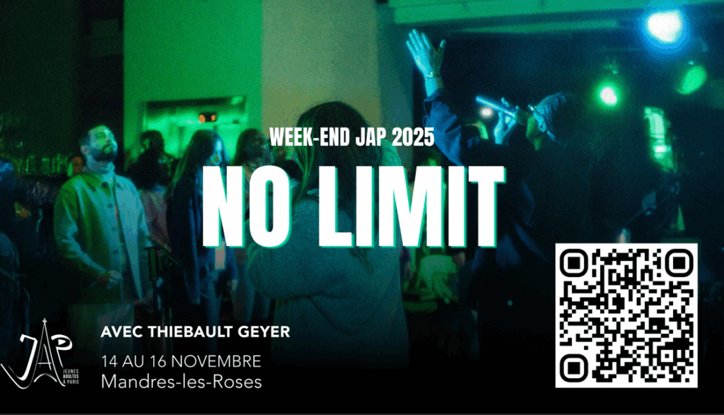 Nous aurons notre prochaine édition du week-end JAP, la retraite des jeunes adultes de l’Église Paris Métropole, les 14, 15 et 16 novembre à Mandres-les-Roses ! Les inscriptions sont ouvertes ! S’inscrire