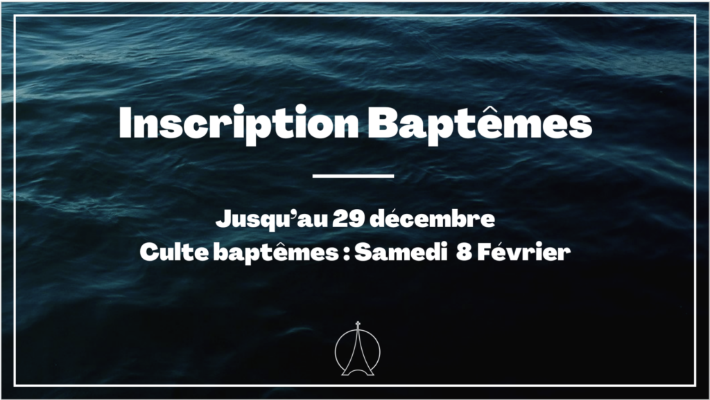 Les inscriptions pour les baptêmes, prévus pour le samedi 08 février, sont désormais ouvertes. Si vous souhaitez vous faire baptiser, nous vous invitons à vous inscrire dès maintenant.