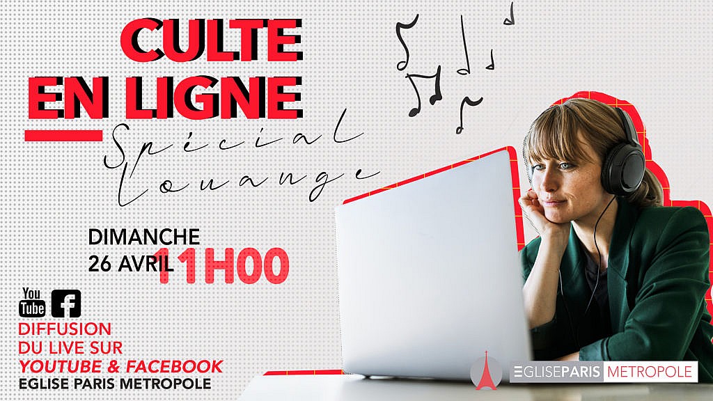 Retrouvons nous demain, dimanche 26 avril à 11h pour un Culte en ligne, spécial Louanges !