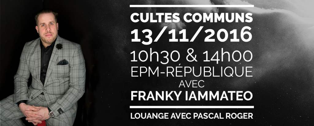 Dimanche 13 Novembre, tous les campus de l’Eglise Paris Métropole se rassemblent à EPM-République pour accueillir l’évangéliste Franky Iammatteo et le leader de louange Pascal Roger.