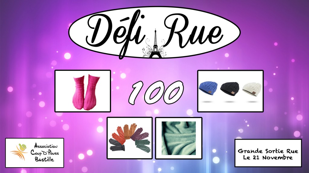 Pour soutenir le département « Social et bienfaisance » (Coup D’Pouss Bastille), plus précisément pour l’équipe rue, nous avons besoin de matériel. L’hiver approche, et il nous faut des couvertures, gants…
