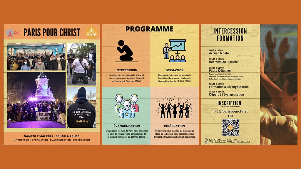 Il y aura la participation de plusieurs ministères et groupes d’évangélisations. Invitez un maximum de personnes pour un maximum d’impact à Paris pour la gloire de Dieu !