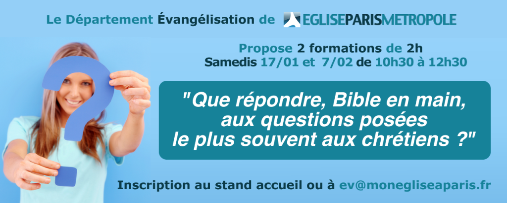 Le département évangélisation propose 2 formations les samedis 17 janvier et 7 février de 10h30 à 12h30.