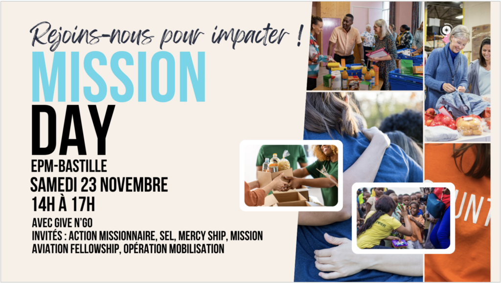 Nous aurons l’honneur d’avoir de nombreux associations invitées : Action Missionnaire, Sel, Mercy Ship, Mission Aviation Fellowship, Opération Mobilisation