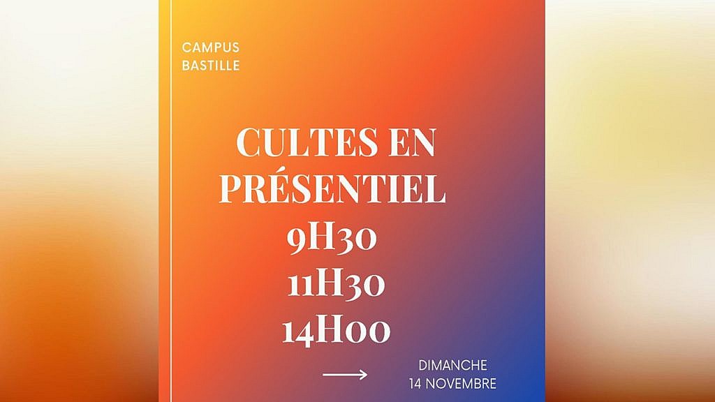 LE DIMANCHE 14 NOVEMBRE : l’horaire du 3ème culte sera modifié à 14h (au lieu de 13h)