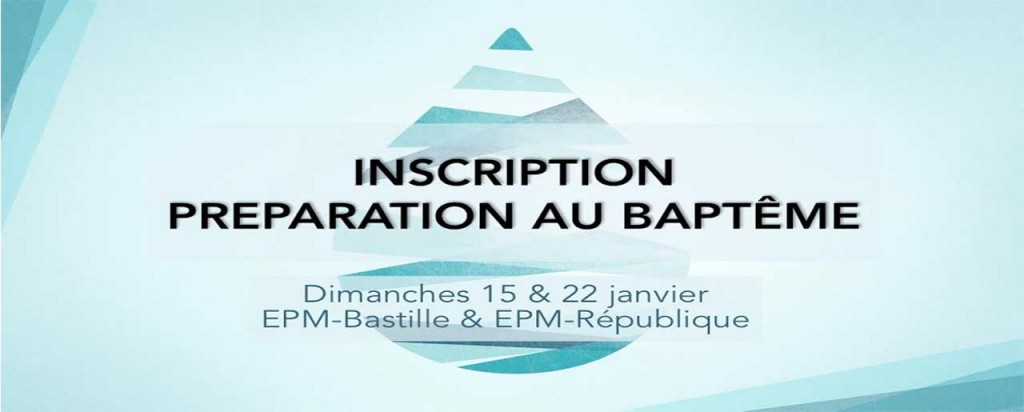 Les inscriptions à la prochaine séance de préparation au baptême auront lieu les dimanches 15 et 22 Janvier à EPM-République & EPM-Bastille.