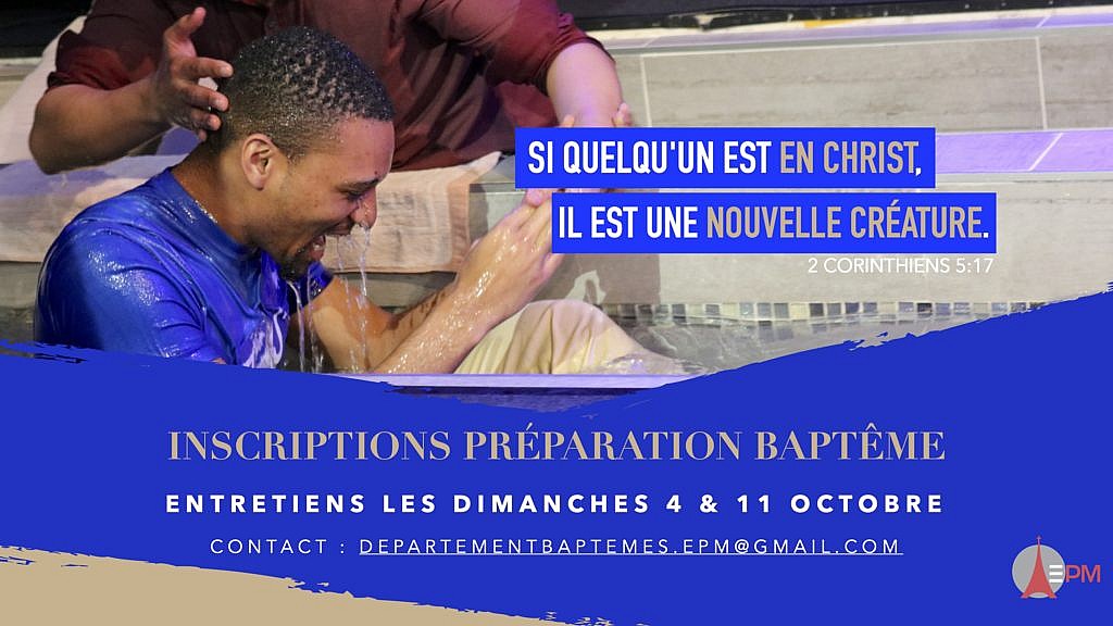 Si vous êtes intéressés, inscrivez-vous en contactant le departementbaptemes.epm@gmail.com.