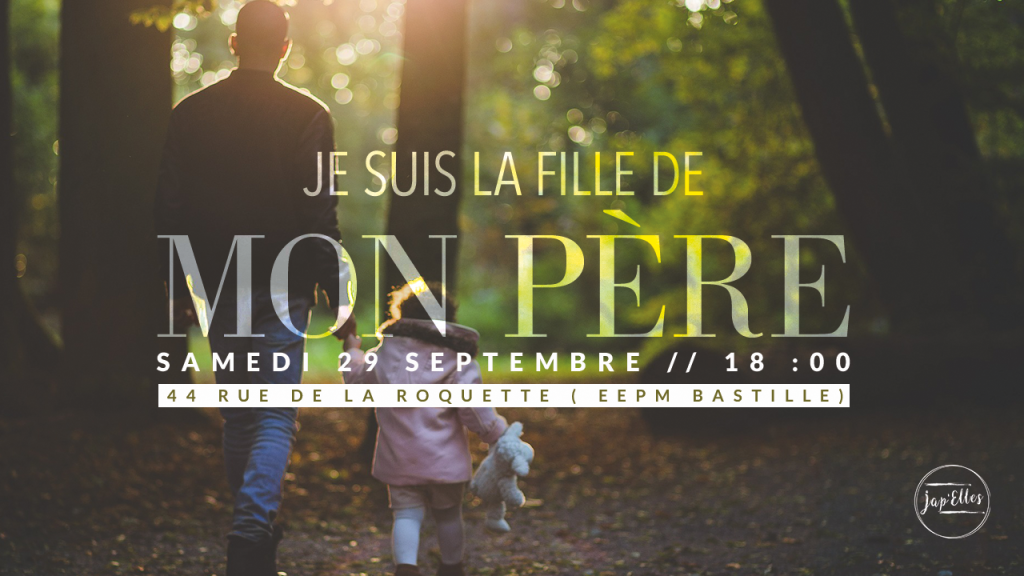 Tu souhaites passer un moment intense dans l’intimité avec Ton Père? Découvrir davantage qui Il est? Ne rate surtout pas l’événement de la rentrée de JAP’ELLES avec le thème « Je suis la fille de mon Père ».
