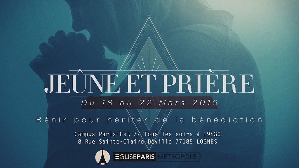 Rejoignez les équipes d’intercesseurs et les frères et sœurs du campus Paris-Est pour des temps de jeûne et prière du 18 au 22 Mars 2019 au 8 rue Sainte-Claire Déville 77185 Lognes.