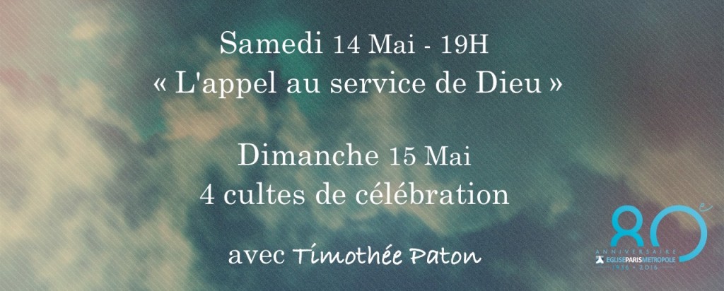 – Samedi 14 Mai à 19H00 :  Réunion “L’appel au service de Dieu”