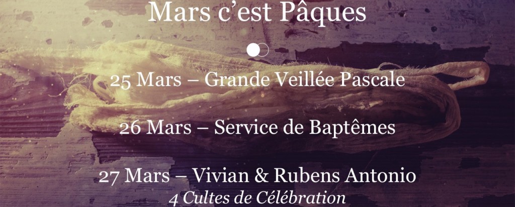 – 4 Cultes de célébration avec Rubens et Vivian Antonio le 27 Mars (9H, 10H, 12H, 14H)