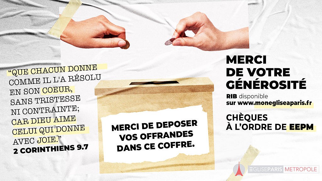 “Si vous êtes nouveaux, vous avez sûrement remarqué que nous sommes très sobres concernant les offrandes. l’équipe pastorale et le ca tiennent à vous remercier pour votre fidélité. Nous avons encore beaucoup de projets pour faire avancer l’évangile et c’est toujours en fonction des offrandes.”