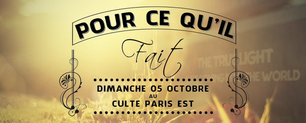 Pour notre culte Paris Est du dimanche 5 octobre 2014, venez découvrir un nouveau message intitulé : “Pour ce qu’il FAIT“.