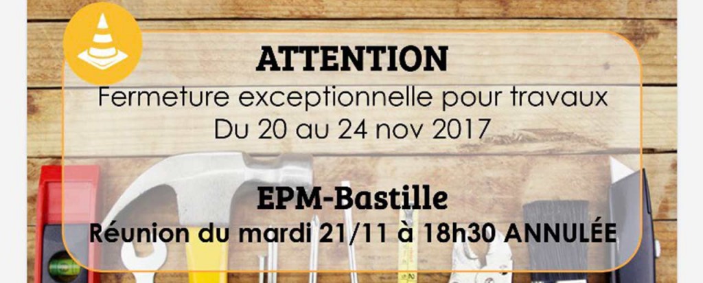 Le campus EPM-Bastille sera fermé du 20 au 24 novembre pour travaux.