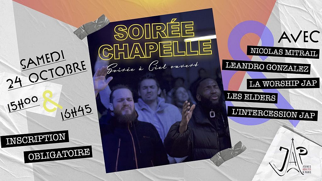 Jeunes Adultes à Paris, suite au contexte actuel, nous avons déplacé notre Soirée Chapelle au samedi 24 octobre à 15h ou à 16h45 sur le Campus de Bastille !