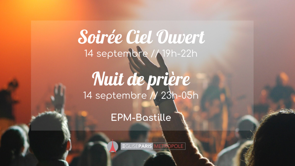 Ne manquez pas notre prochaine soirée Ciel Ouvert suivie d’une Nuit de Prière ce vendredi 14 septembre à partir de 19h.