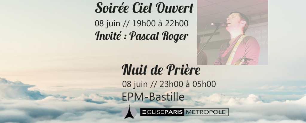 RDV vendredi 08 juin de 19h à 22h pour la Soirée Ciel Ouvert et de 23h à 5h pour la Nuit de Prière.