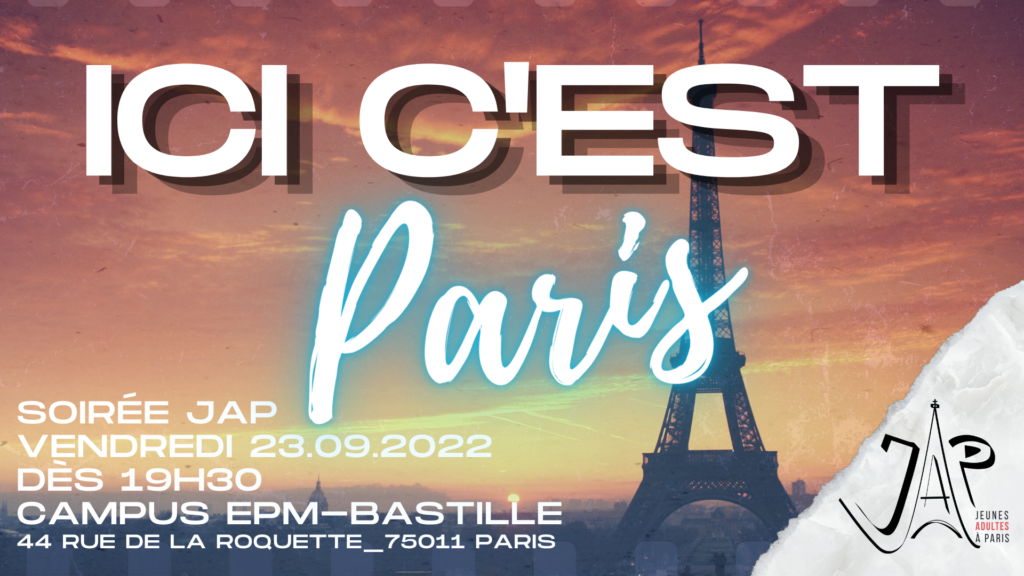 Cette soirée commencera par un temps de louange et de prière, et ensuite il y aura un temps de communion fraternelle où tu pourras poser toutes tes questions pour naviguer dans cette jungle urbaine qu’est Paris !